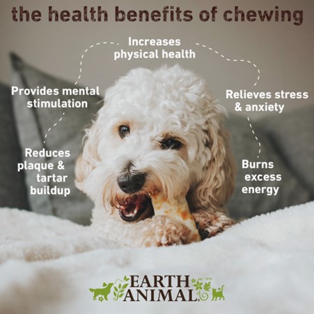 Not only does chewing No-Hide Chews help relieve stress and anxiety and provide mental stimulation, it also has physical benefits too!