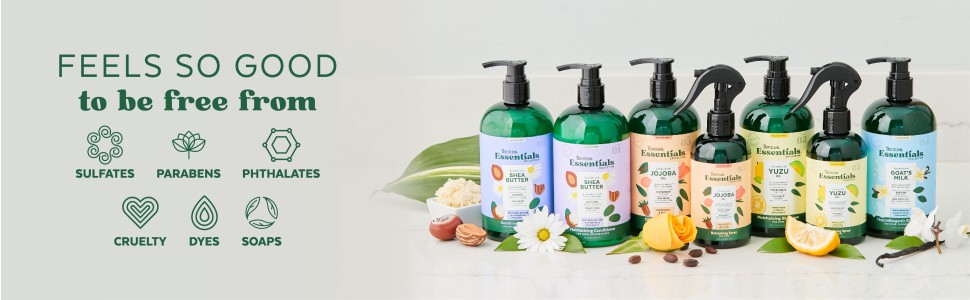 The TropiClean Essentials collection is free from sulphates, parabens, pthalates, dyes, soaps, and is cruelty free.