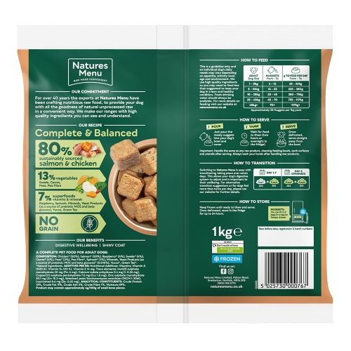 Natures Menu Frozen Dog Food Complete & Balance 80/20 Sustainably Sourced Salmon & Chicken 1kg