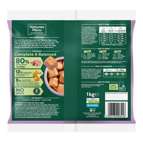 Natures Menu Frozen Dog Food Complete & Balance 80/20 Farm Reared Turkey 1kg